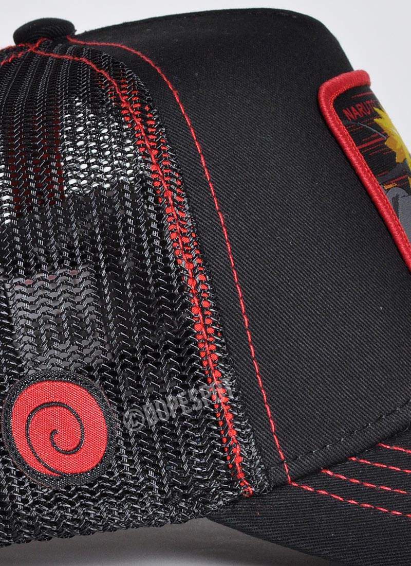 czapka typu trucker - bok i tył czapki z siateczki - z wzorem na licencji Naruto